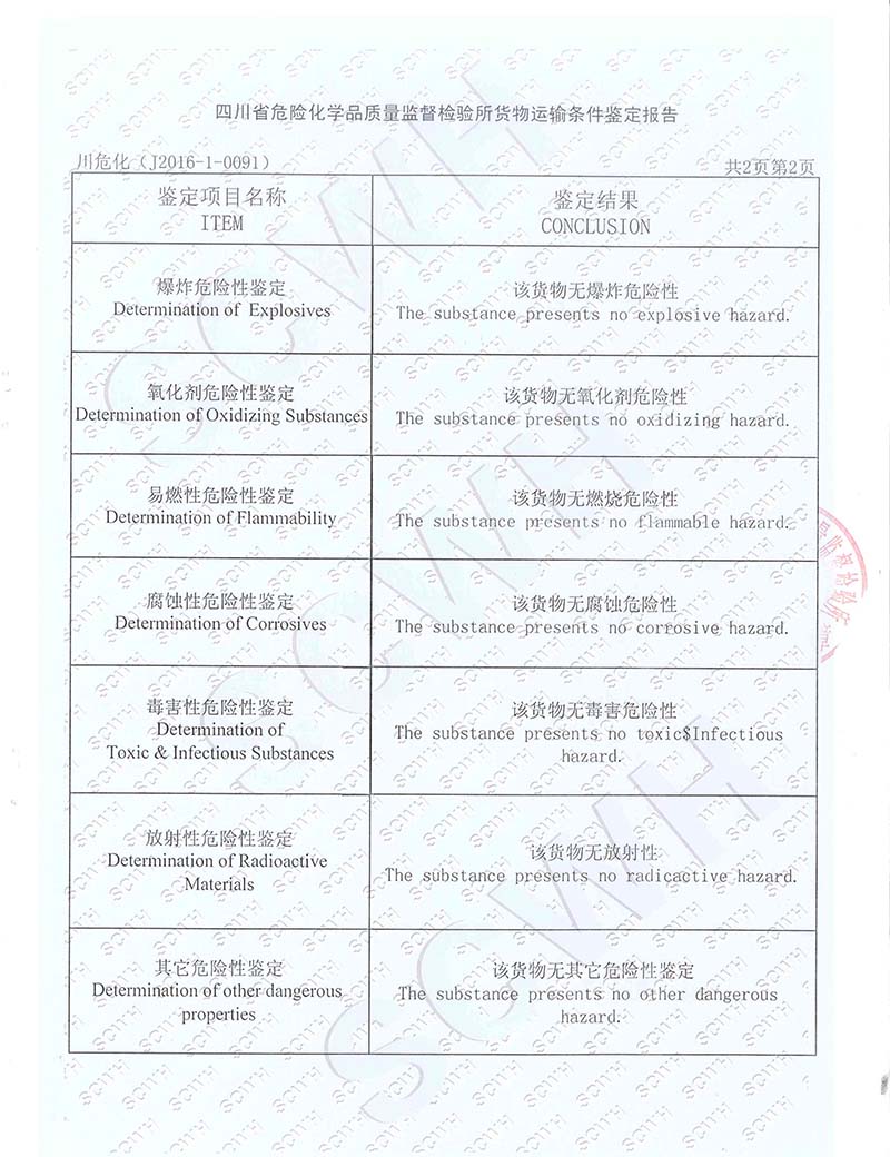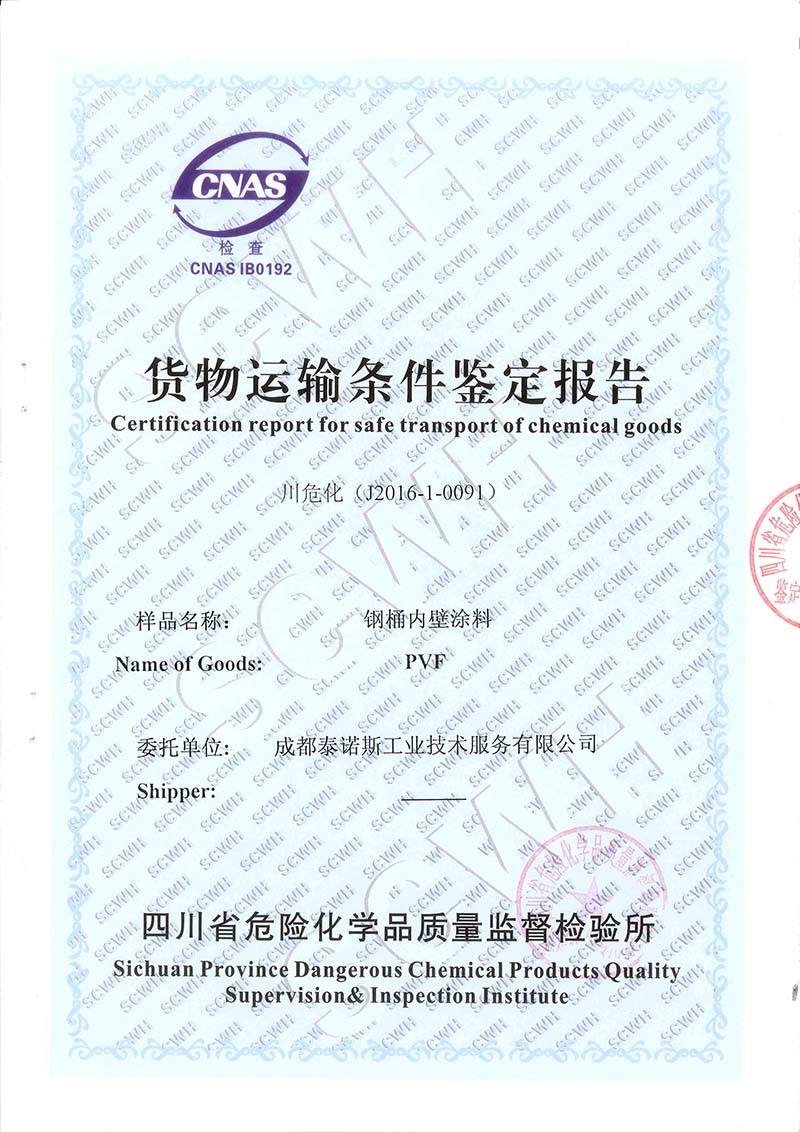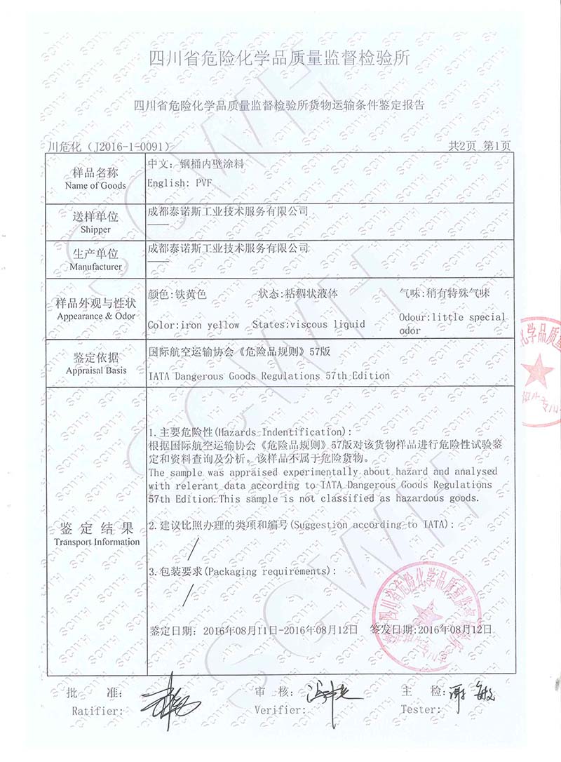 TNS 钢桶内壁涂料非危险品运输条件鉴定报告
